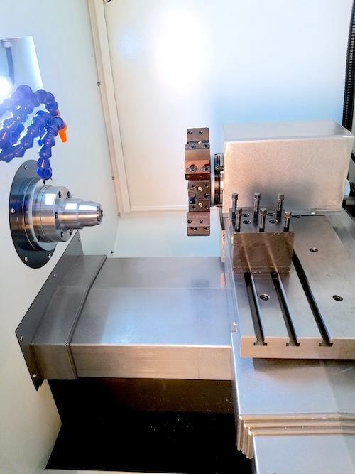 A pneumatic collet system with foot actuator, ergonomic control, and digital handwheel are a few of the features that make this low-cost gang tool lathe one of the best deals for volume production CNC lathes.